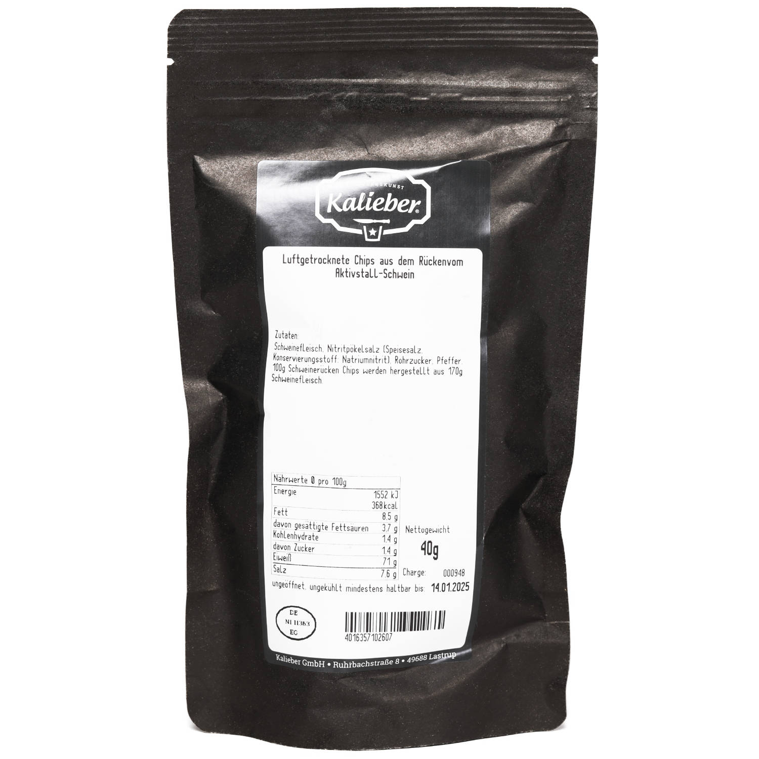 Die luftgetrockneten Chips vom Aktivstall-Schwein von Kalieber sind ein außergewöhnlicher Snack für Liebhaber herzhaften Geschmacks. Aus hochwertigem Schweinefleisch von artgerecht gehaltenen Aktivstall-Schweinen gefertigt, werden die Chips schonend luftgetrocknet und mit natürlichen Gewürzen verfeinert. Das Ergebnis ist ein knuspriger, proteinreicher Genuss mit authentischem Aroma und unverfälschtem Geschmack. Ideal für unterwegs oder als besondere Knabberei zu Bier und Wein – Kalieber bringt echte Qualität und verantwortungsvolle Haltung in den Snack-Genuss.