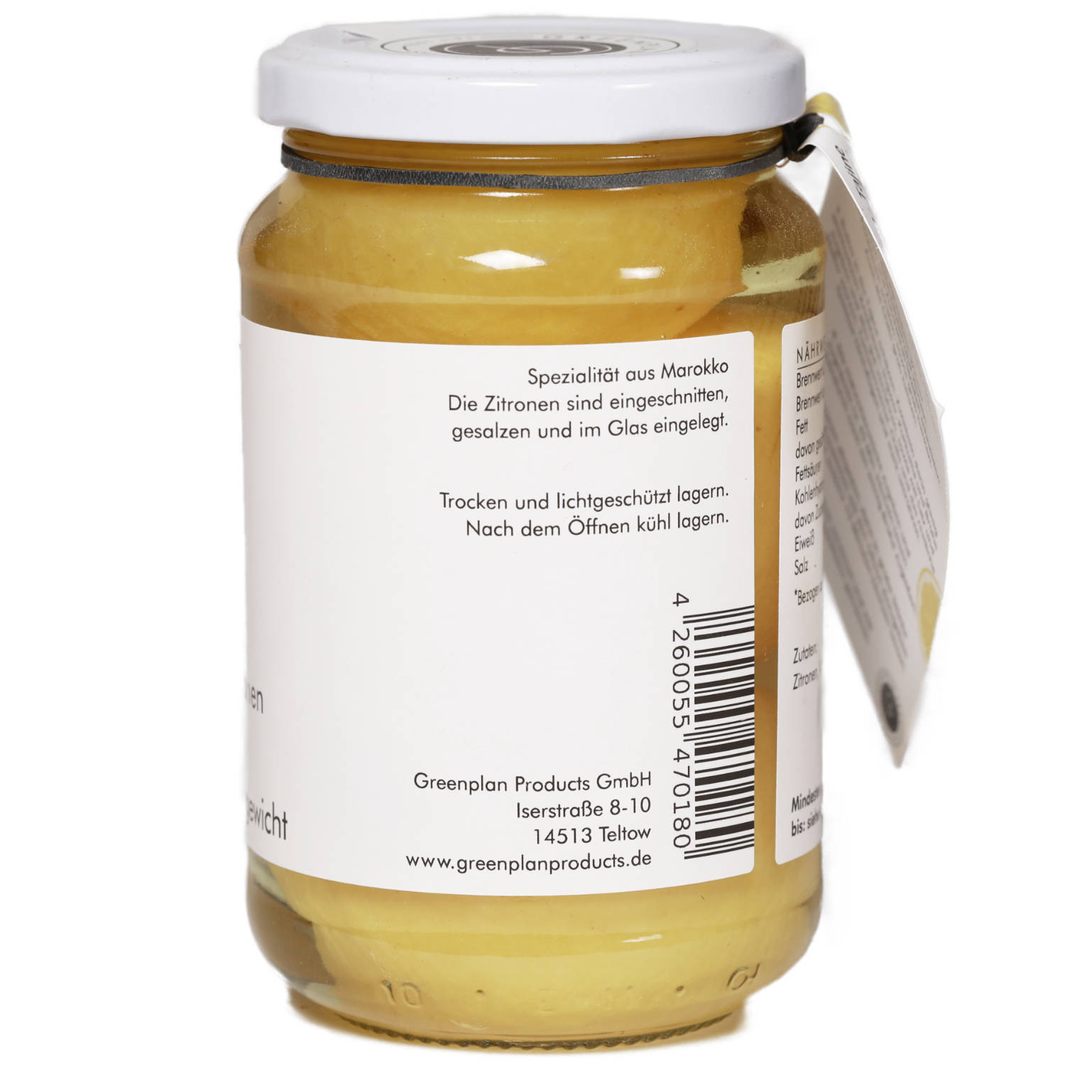 Die Salzzitronen aus Marokko von Greenplan Products sind eine köstliche Zutat der nordafrikanischen Küche, die Gerichten eine intensive, würzige Zitrusnote verleiht. Durch die traditionelle Salzeinlage entwickeln die Zitronen ein mildes, dennoch komplexes Aroma, das hervorragend zu Tajine, Couscous, Marinaden und Salaten passt. Ideal für alle, die authentische marokkanische Aromen in ihre Küche bringen möchten – ein Muss für Feinschmecker und Liebhaber exotischer Gewürze.