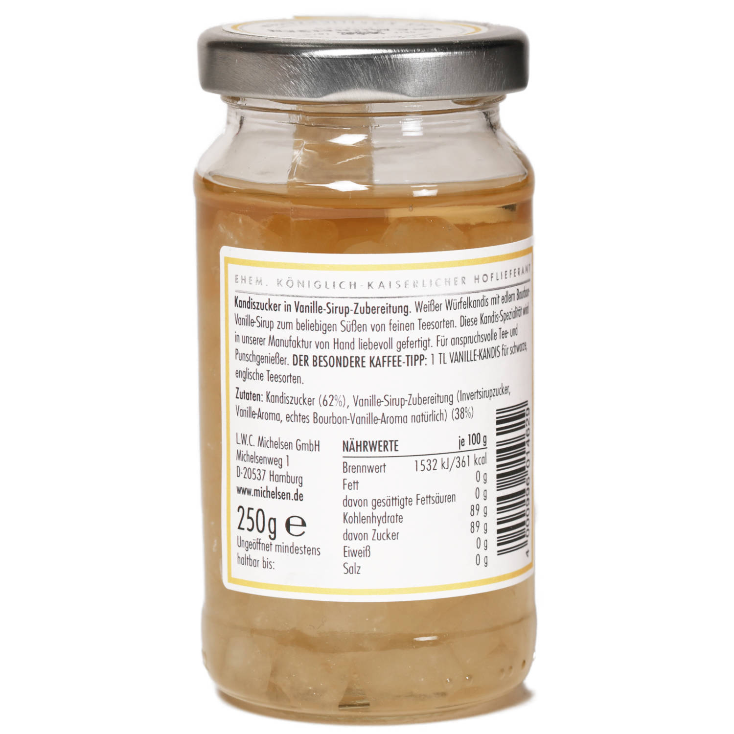 Der Vanille Kandis von L.W.C. Michelsen veredelt Heißgetränke mit einem Hauch von Luxus. Feine Kandiskristalle werden mit echter Bourbon-Vanille verfeinert und verleihen Tee, Kaffee oder Glühwein eine zart-süße und aromatische Note. Ideal für besondere Genussmomente und eine exquisite Ergänzung für die Teestunde. Traditionell hergestellt und liebevoll verpackt – der perfekte Genuss für alle, die Süßes mit Stil schätzen.